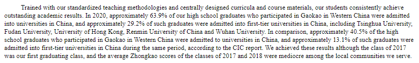 第一高中教育集团在其招股书中表示,企业正在进一步探索和实行轻资产商业模式,采用同第三方伙伴合作的形式进行,第三方伙伴包括政府和房地产开发商。