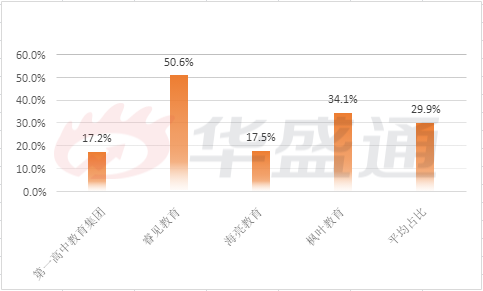 在与已在港美股上市的同行业企业的对比中,就固定资产占总资产的比例来看,第一高中教育集团处于一定的优势地位,与同样对外宣称采用“轻资产运营与外延并购并重”的海亮集团相似。与第一高中教育集团相比较的,睿见教育为在港上市的民办教育集团,属于华南地区;海亮教育则是赴美上市的K12集团,枫叶教育为第一家赴港上市的内地基础教育集团。