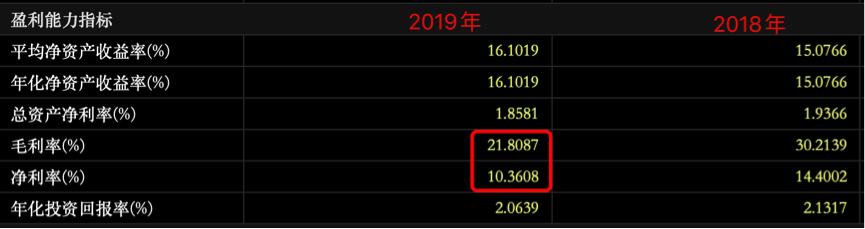 尽管经营数据较2018年有明显改善,但在营收净利增长的情况的,金辉毛利率较去年同期下降了8.4个百分点,只有21.81%,远低于30%的行业平均毛利率;净利率也同比下降了4.04个百分点,为10.36%。