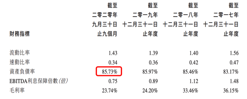逐年攀升的负债规模,也导致金辉资产负债率持续高企。截止到2020年9月底,金辉资产负债率仍高达85.73%。