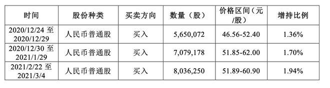 上述公告显示,蒙牛于 2020 年 12 月 24 日至 2021 年 3 月 4 日期间,以自有资金三次通过上交所的集中竞价交易系统增持妙可蓝多股份,增持比例分别为 1.36%、1.70%、1.94%,合计增持 5%。以此计算,蒙牛三次增持妙可蓝多所花费的成本约为 10.44 至 12.24 亿元。