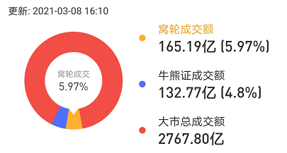 其中,窝轮总成交165.19亿港元,牛熊证总成交132.77亿港元。