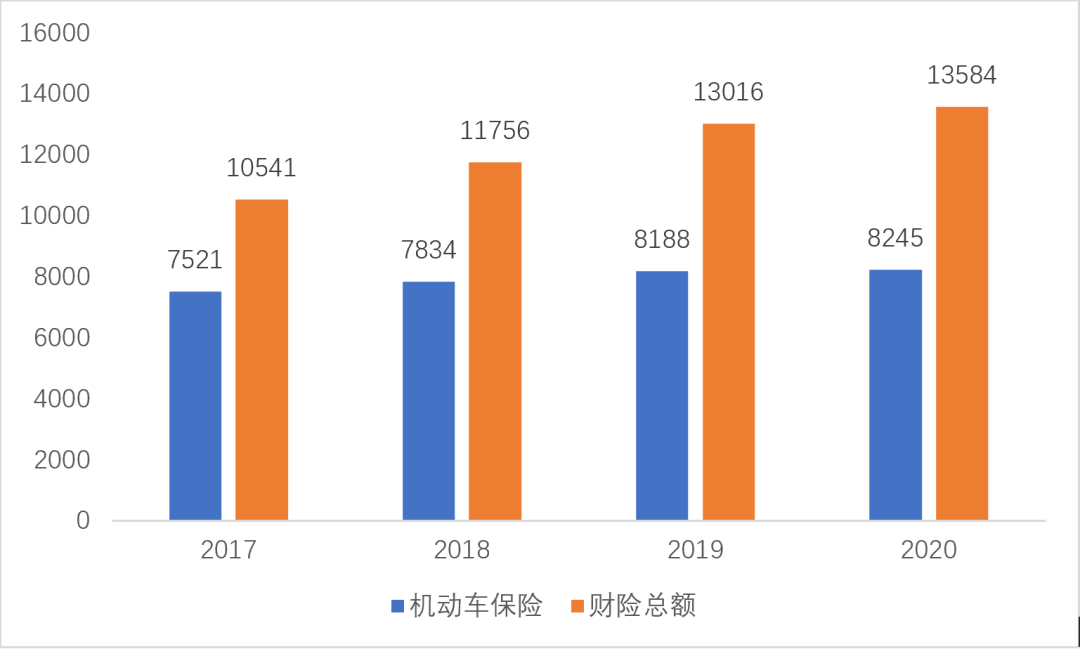 车险与财险总额对比(单位:亿元,来源:银保监会)