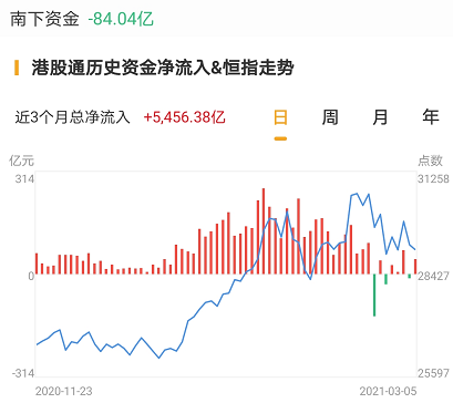 南下资金今日净流出港股84.04亿港元,上周五净流入超46亿港元。