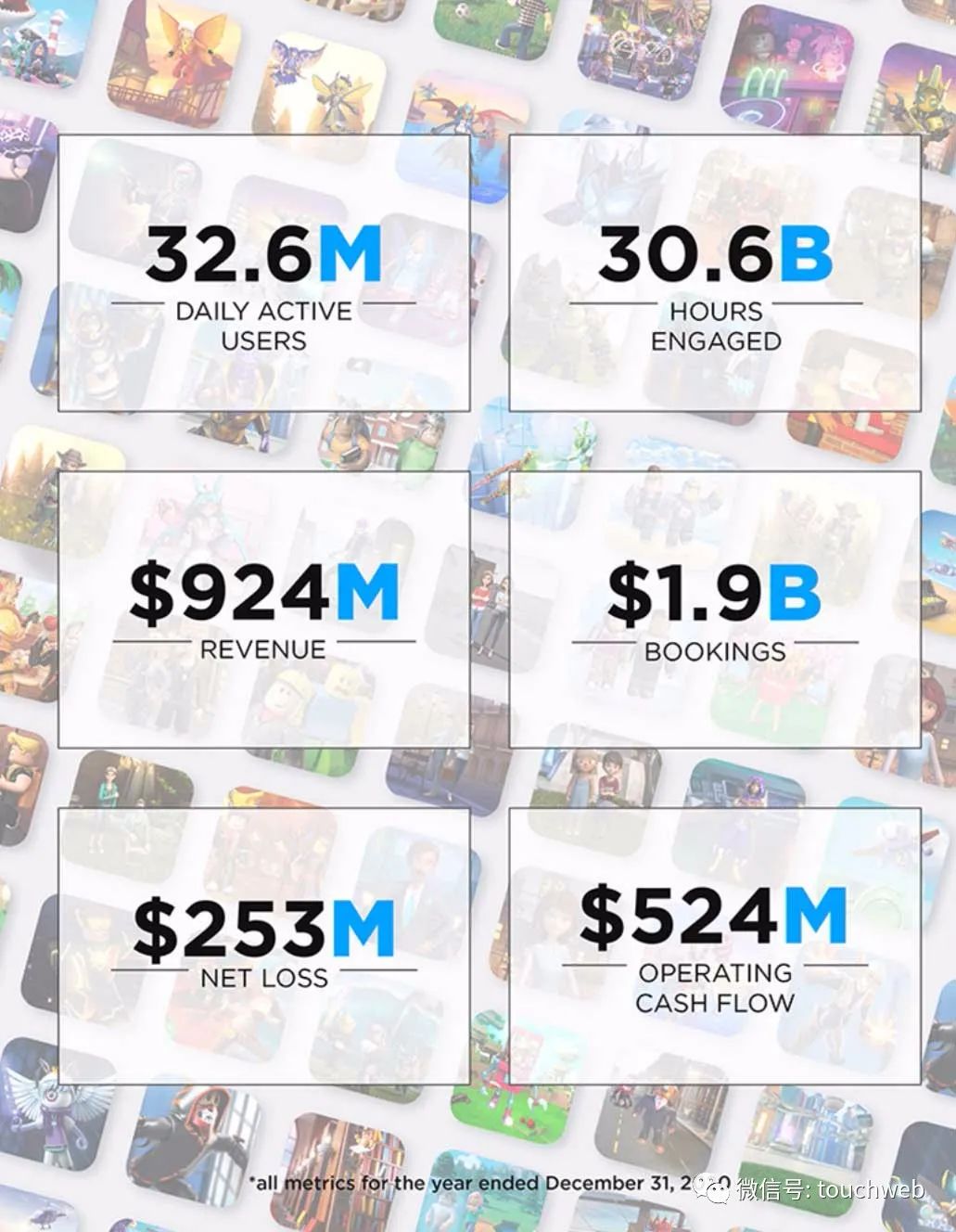 截至2020年12月31日,Roblox拥有现金及现金等价物为14.29亿美元,上年同期为8.9亿美元。