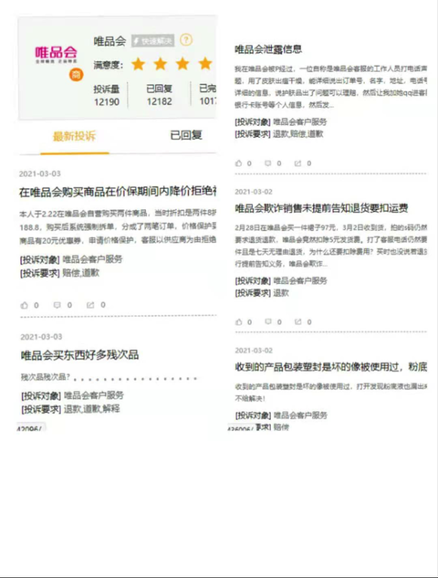 此外,中国科技新闻网从黑猫投诉上了解到,关于唯品会的投诉信息有万余条,其中也不乏有唯品会泄露信息的投诉。