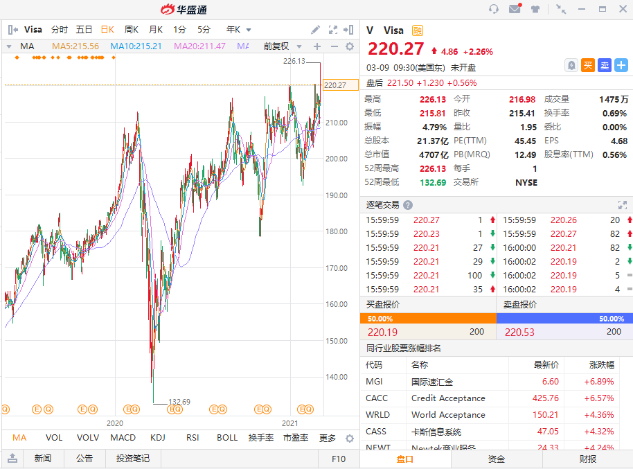 Visa目前的股息率为20%,这是非常可持续的比例,为公司未来的股息增长提供了更多的空间。在刚刚过去的三年时间里,Visa的股息就增长了近80%,过去五年,该股的总回报率为177%,随着疫情得到控制,人们的正常消费得以恢复正常,Visa有望获得两位数的股息增长。