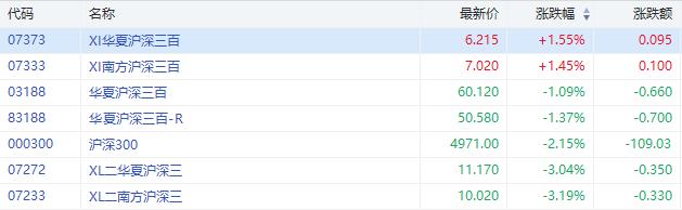 沪深300指数跌2.15%。其中,华夏做空沪深三百涨1.55%;华夏两倍做多沪深三百ETF跌3.04%。