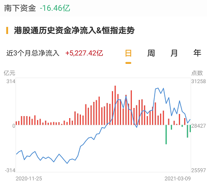南下资金今日净流出港股16.46亿港元,周二净流出超47亿港元。