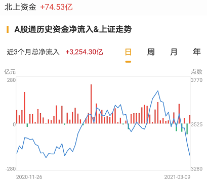 北上资金今日净流入74.53亿元,周二净流入超49亿元。