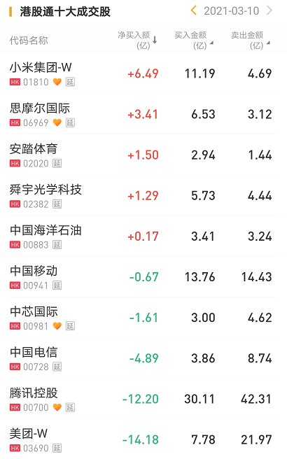 个股方面,今日南下资金净买入小米集团6.49亿港元,为今日买入之最。此外,南下资金净买入思摩尔国际3.41亿港元,净买入安踏体育1.5亿港元。