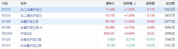 沪深300指数跌0.34%。其中,华夏做多沪深三百ETF跌0.96%,成交额9.97亿港元;华夏做空沪深三百跌2.25%。
