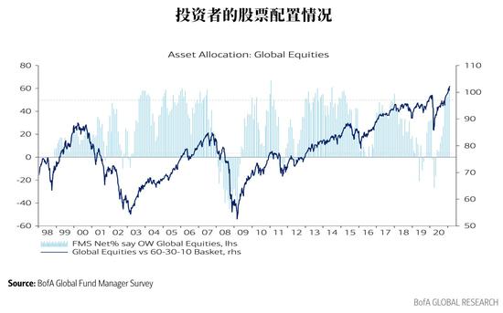 对股票和大宗商品的配置达到2011年2月以来的最高水平。