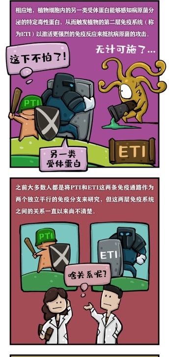 研究发现,植物的第一层免疫系统(PTI)对激活第二层免疫系统(ETI)输出正常的免疫反应,尤其是在调控活性氧的产生方面起有重要作用。