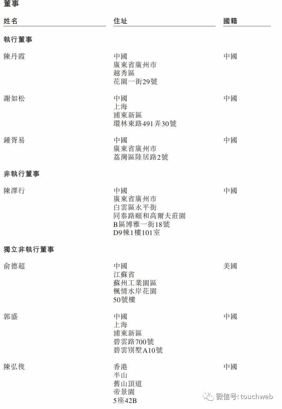 朝云集团执行董事为陈丹霞、谢如松、钟胥易,非执行董事陈泽行,独立非执行董事俞德超、郭盛、陈弘俊。陈丹霞及陈泽行为陈氏家族的成员。