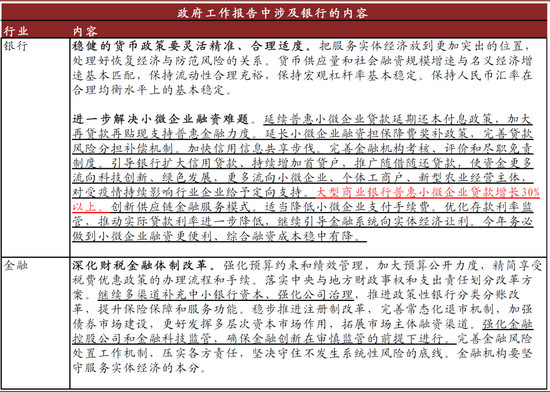 图表: 政府工作报告涉及银行部分,大行普惠小微压力边际大幅释放,数量要求放松,价格要求删除