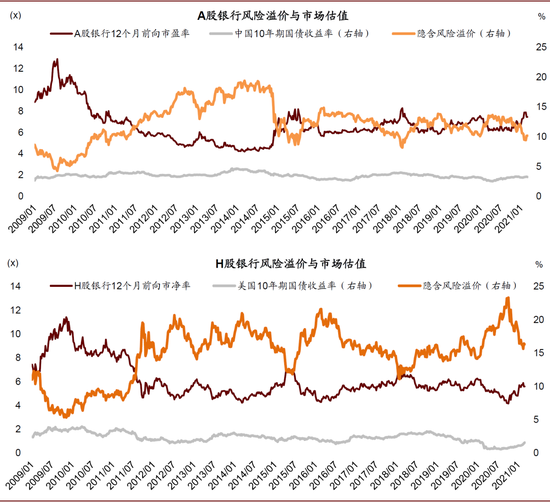 业绩V型反转外,我们再次重申,本轮银行估值反转的核心因素还包括风险溢价因素(ERP)的V型反转,目前,H股/A股目前录得16%/10%,较过去十年历史低点的6%/7%仍有较大调整空间,甚至大概率突破历史低点,主要源自过去十年第一次行业业绩负增长大幅修复资产负债表,相当部分银行机构的报表修复至投资者认可的真实健康状态(如披露2020年报后的平安银行)。向前看,业绩反转和风险溢价因素反转将推动银行股票重估,我们认为,A/H银行股上涨空间在39/45%以上。