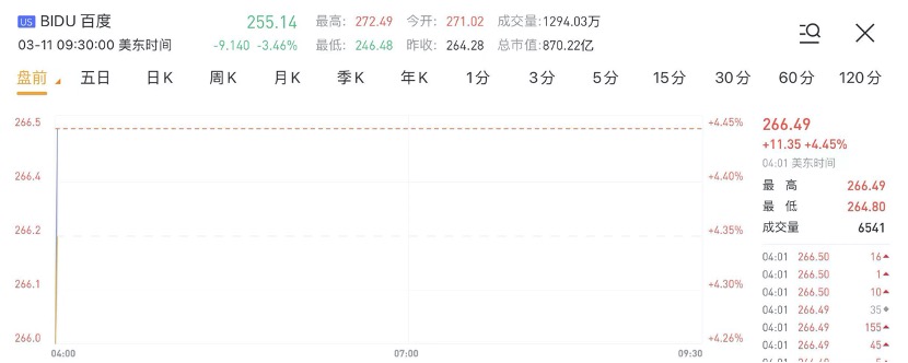 华盛资讯3月11日讯,百度盘前涨约4.5%,据报道,百度港股将于周五开始招股。