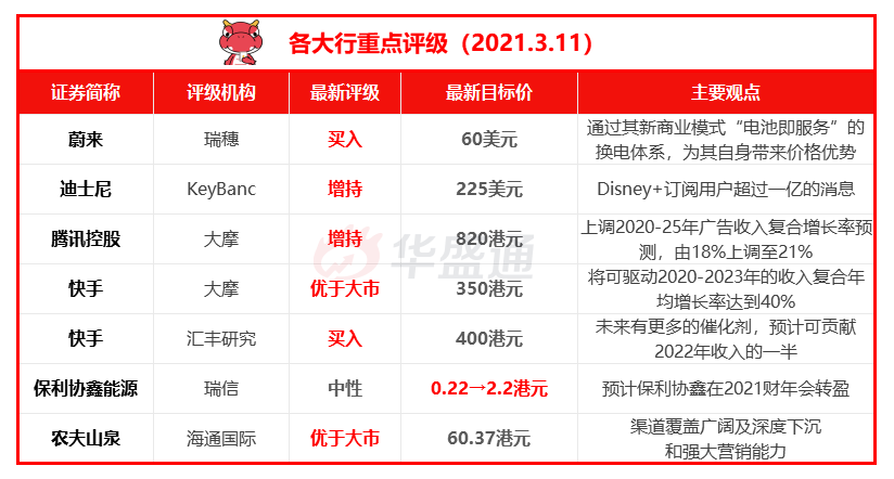 KeyBanc发布研究报告,受Disney+订阅用户超过一亿的消息提振,KeyBanc重申对迪士尼(DIS.US)“增持”评级,目标价为225美元。该行指出,内容带来的无形利益在公司业务之间产生了飞轮效应。另外,该行还注意到近日美国加州放宽了限制,迪士尼乐园可能将在4月份重新开放。