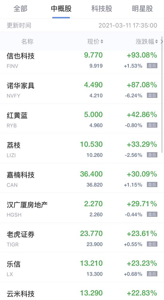 (截图来自新浪财经APP 行情-美股-中概股热门板块)下载新浪财经APP