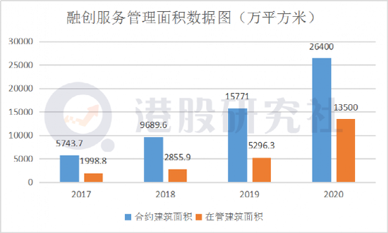 2019年11月,融创服务收购了成都环球世纪,2020年5月,融创服务又并购了业内知名的开元物业。并购推动下,融创服务在管面积由2019年年底的0.53亿平方面增长至1.01亿平方米,合约建筑面积为2.27亿平方米。