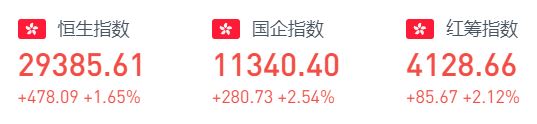 周四恒生指数涨478.09点或1.65%,报29385.61点,全日成交额达2152.66亿。国企指数涨2.54%,报11340.4点,红筹指数涨2.12%,报4128.66点。