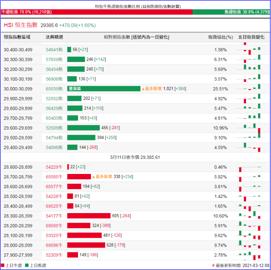街货分布方面,至周四,恒指牛证街货在收回价28300点至28900点之间,累计相当约1316张期指合约;恒指熊证街货在收回价29400点至30100点之间,相当约2583张期指合约。