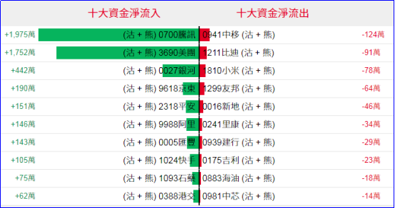 淡仓(认沽证及熊证)方面,周四腾讯、美团相关淡仓分别约1975万及1752万港元资金净流入部署,银河、京东、平安相关淡仓也见部分资金净流入;中移、比迪相关淡仓则见少量资金净流出。