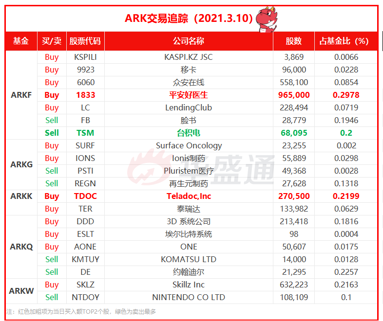 ARK昨日买入大于卖出,新型医疗、生物科技、新技术仍然是女股神的买入方向,三只港股被作为价值股买入,女股神在采访中表示,公司准备纳入更多价值股。