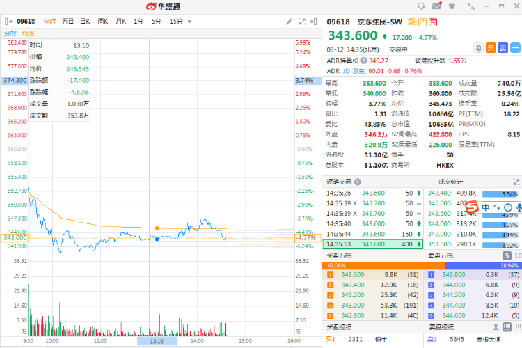 京东港股跌近5% 国金证券董秘回应京东收购股权传闻:不实