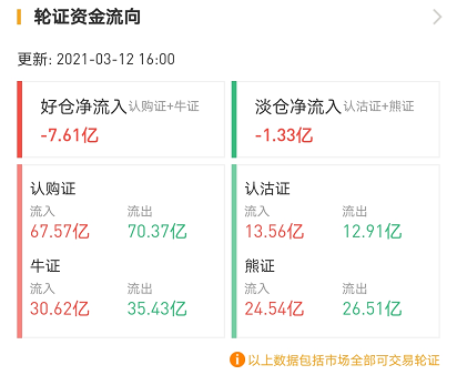 其中,窝轮总成交167.29亿港元,牛熊证总成交123.42亿港元。