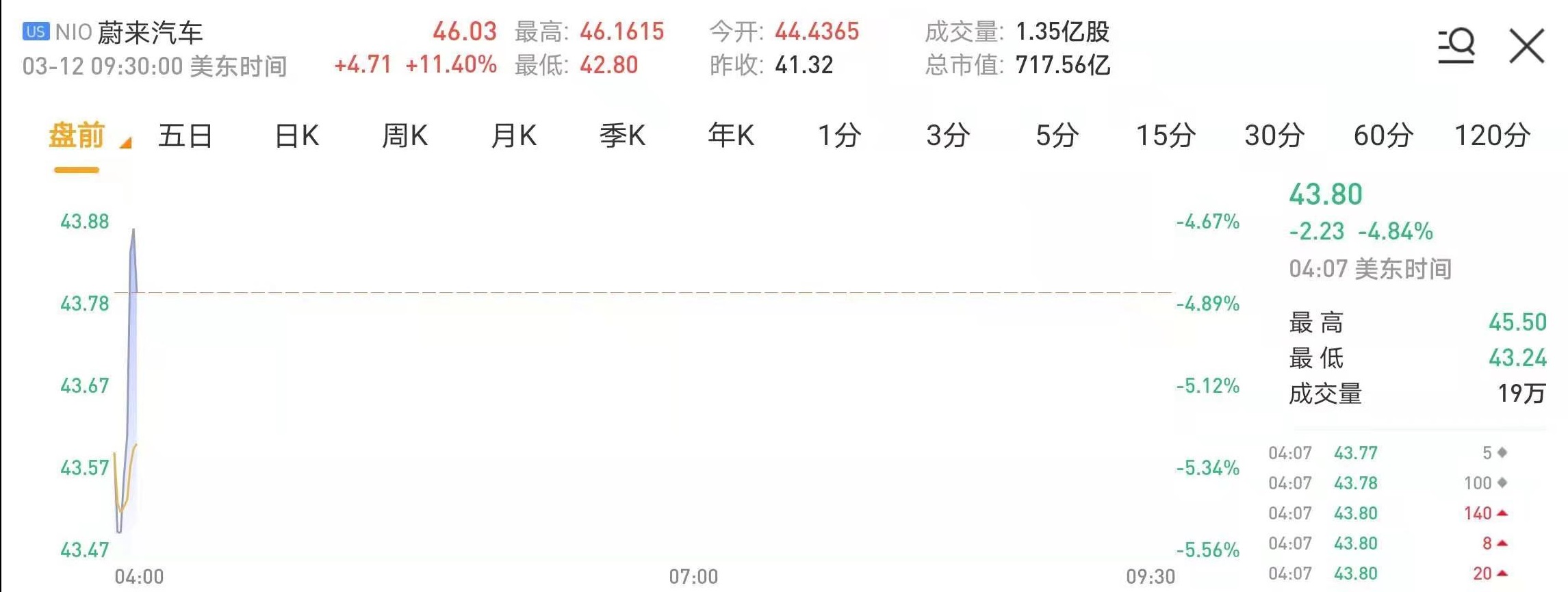 华盛资讯3月12日讯,美股新能源车板块盘前全数走低,蔚来汽车跌近5%,百度跌5.4%,小鹏汽车跌5%,特斯拉跌近3%,理想汽车跌近4%。