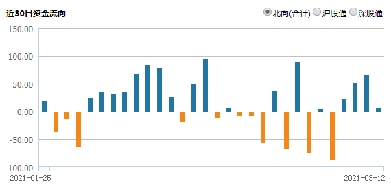 北上资金净流入A股66亿元;