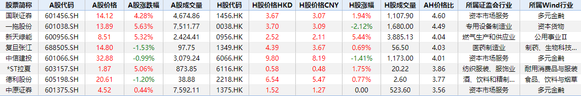 个股方面,国联证券、一拖股份、新天绿能、复旦张江、中信建投、*ST拉夏、德利股份、中原证券等个股位列溢价榜首,投资者可关注相关个股估值回归机会。