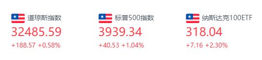 美股周三涨跌不一,道指涨188.57点,或0.58%,报32485.59点;纳指涨329.84点,或2.52%,报13398.67点;标普500指数涨40.53点,或1.04%,报3939.34点。
