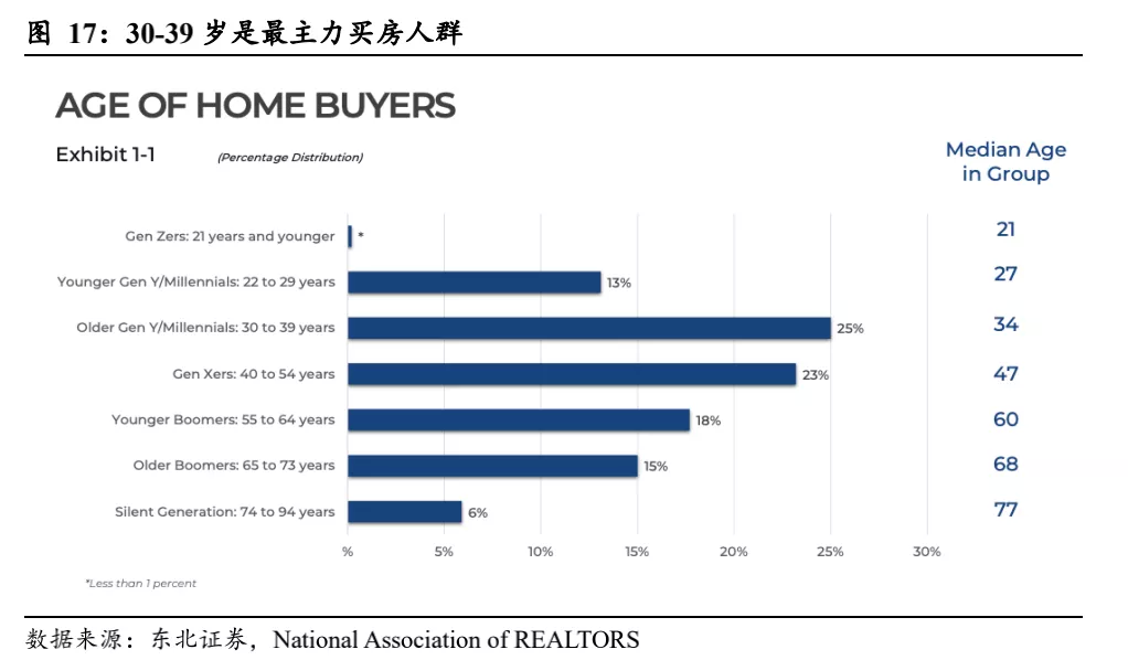此外,美国当前人口结构也支持房地产长周期向上开启。根据美国房地产经纪人协会(National Association of REALTORS)的调查,30-39岁人群为美国主力买房人群,目前这个群体出生时间为1980-1990年,而这一时期也是50年来美国出生率最高的时期,适龄买房人群的数量增长将为房地产市场提供较长时间的需求支撑。
