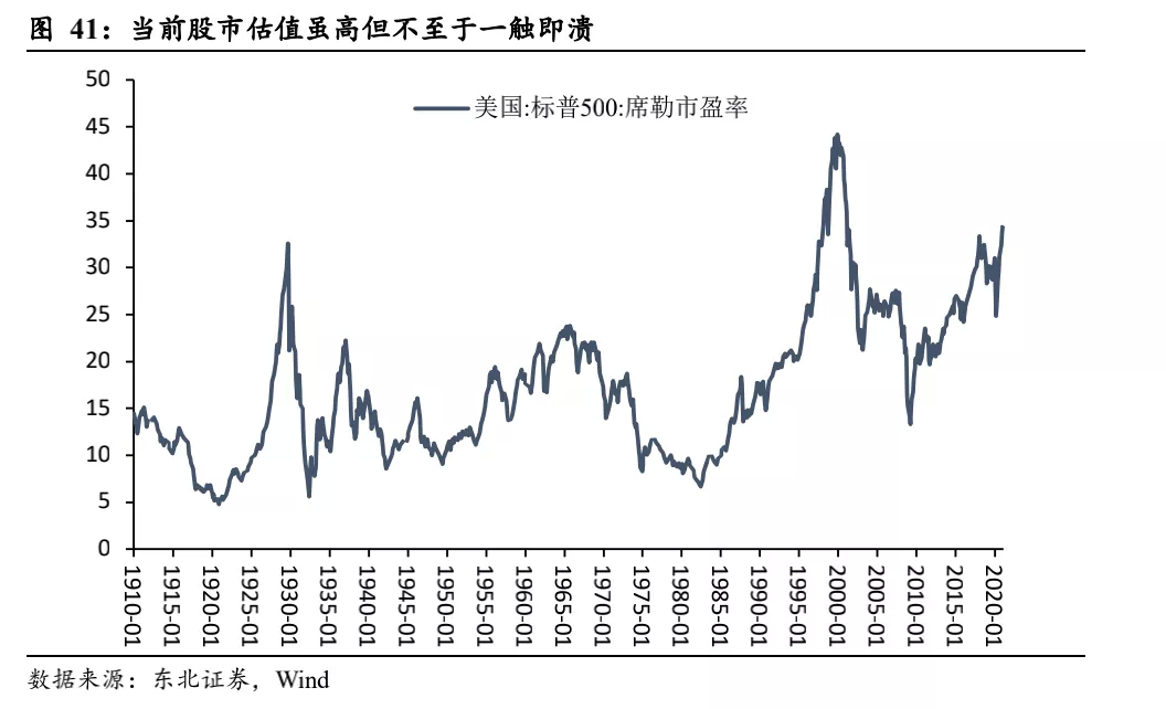 第二,去年全球大放水确实导致股市估值偏高,这是和以往的简单复盘不一样的因素。不过我们对比标普500的席勒市盈率,当前估值远远不及互联网泡沫时期,也仅略高于2018年的水平。值得注意的是,目前美国正处于复苏阶段,股票估值尚未计入盈利增加的预期,未来可以用增长来挤出部分泡沫。所以当前股市估值虽高,但不至于一触即溃。
