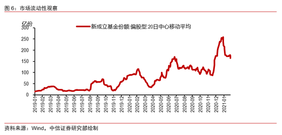 我们在《宏观经济每周聚焦—流动性的三个层次》(20210207)中,详细分析了如何评估和分析不同层次的流动性。根据我们的观察,狭义流动性拐点(以银行间利率水平衡量)出现在去年4月份;广义流动性拐点(以社融和M2增速来衡量)出现在去年10月份;市场流动性拐点(以新成立基金份额衡量)可能出现在今年2月。