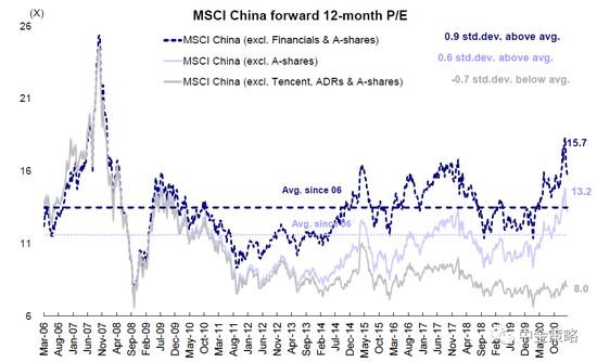 更重要的是,支撑港股市场长期的基本面逻辑并未发生根本扭转,包括南向资金和海外资金持续流入以及盈利前景持续改善等。因此,我们预计港股将在短期风波平静、或者估值有所消化后有望企稳回升。当前,MSCI中国指数动态估值为13.2倍,其中成长股估值回调幅度更大至15.7倍,位于历史均值以上0.9倍标准差。
