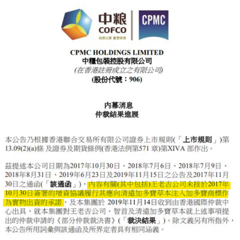 直到19年初,王金昌的“空降”,才为两个集团关系的缓和带来了生机。19年10月底,香港国际仲裁中心判决加多宝需完成商标注入并且赔偿中粮包装2.3亿元。