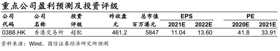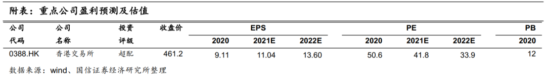 鉴于以下因素,我们将2021年的目标价维持于655港元:(1)我们不认为交易量会在2021年大幅下滑,毕竟美联储的加息时点应该在2022年年底左右,影响不会似疾风骤雨;(2)集团的基本面在持续提升,即上市企业质量在持续提升,对更高的目标价有支撑作用。