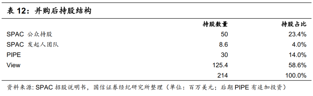Cantor第二家SPAC的简介:CF Finance Acquisition Corp II是在2019年9月设立的空壳公司,于2020年8月上市,融资5亿美元。在2020年11月30日,该SPAC宣布并购一家硅谷的智能窗户制造商(“View”,确实与地产业务相关),在并购过程中引入了一笔3亿美元的PIPE(Private Investment in Public Equity,上市企业私募融资),将View的企业价值(Enterprise Value)评估为16亿美元。