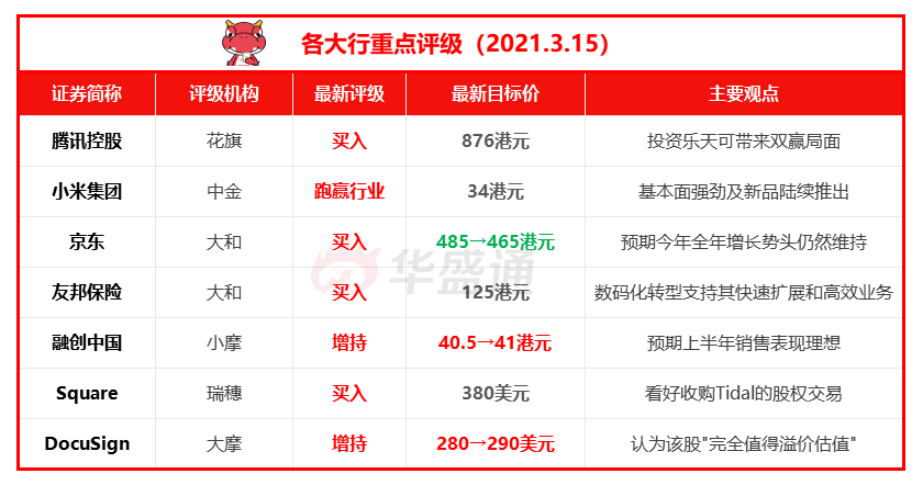 花旗发表的研究报告指,3月12日乐天公布腾讯、日本邮政及Walmart将入股,交易完成后腾讯将成第六大股东。该行认为腾讯策略投资乐天以及双方潜在业务合作可带来双赢局面,相信乐天可学习腾讯在数码钱包系统、智能零售、小程序方面的成功例子,同时腾讯在数码娱乐内容特别是游戏、视频及体育等强项亦可加强乐天的流动服务。