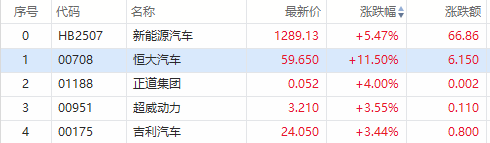 华盛资讯3月16日消息,新能源汽车板块走势亮眼,恒大汽车、正道集团等股价均强势上涨。截止发稿,恒大汽车涨超11%,正道集团涨超4%,超威动力涨超3%,吉利汽车涨超3%。