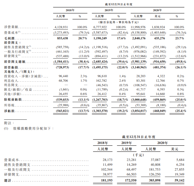 公司净营业额从2018年的人民币41.29亿元增加64.2%至2019年的人民币67.78亿元, 并进一步增加77.0%至2020年的人民币119.99亿元(18.39亿美元)。