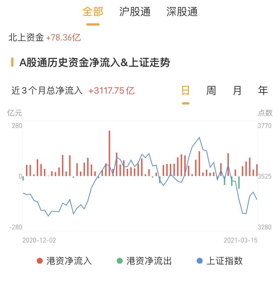 北上资金今日大幅净流入78.36亿元,周一净流入超60亿元。