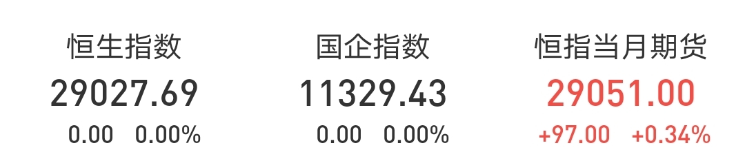 周二,恒生指数开盘涨0.7%,全天窄幅震荡。截至收盘,恒生指数涨193.93点或0.67%,报29027.69点,全日成交额达1545.85亿。国企指数涨1.66%,报11329.43点,红筹指数涨1.33%,报4158.19点。
