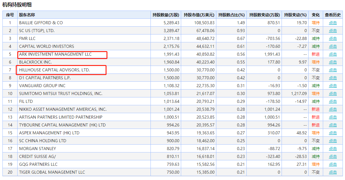 贝壳的竞争优势呈现马太效应不断扩大,自然也吸引了众多机构投资。除了上市前贝壳股东就已经汇聚了腾讯、软银、红杉资本等明星股东以外,上市后贝壳还吸引了高瓴资本、ARK基金、贝莱德基金、富达基金等诸多知名机构加仓增持。