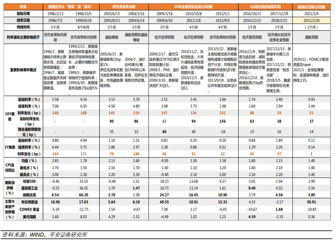 注:图为美债利率快速上行期复盘,来源:平安证券