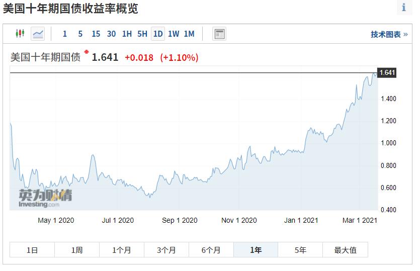 高盛行经济学家预计未来数月美债收益率将继续上行,美国今年二季度实际GDP增速达11%,核心PCE升至2.3%,表明投资者将不得不在经济过热和美联储边际缩减政策的潜在可能性之间平衡。预料十年期美债收益率在今年年中升至1.8%,随后至年底达1.9%。此外,美股应能轻易消化十年期美债收益率达2%的影响。